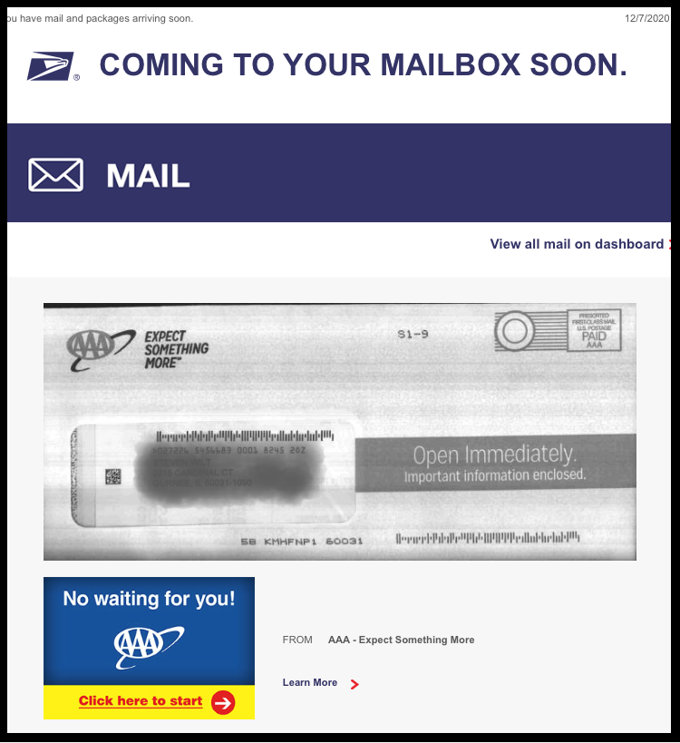 From a business mailer’s perspective, basic Informed Delivery with a grayscale image of their mail packages provides a bit of value. It allows consumers to get an advanced notice that the mail piece is coming, creating an additional impression of the company and/or product.