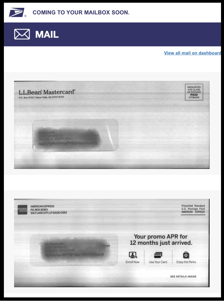 It is a simple process to sign up for Informed Delivery at https://informeddelivery.usps.com/box/pages/intro/start.action. Mail is scanned as it goes through automated processing and the images are matched to the delivery point in the postal barcode. The recipient receives the mail piece images daily, and typically the mail arrives the same day, but occasionally the following day.
